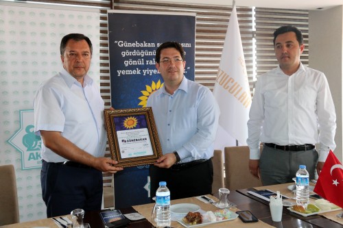 Yapılan konuşmanın ardından Başkan Yazgı, Otel sahibi Mahmut Kuzucu’ya Günebakan sertifikasını takdim etti.