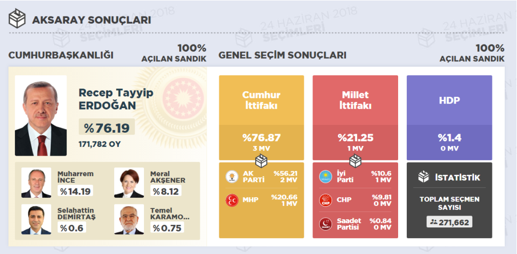 24 Haziran 2018 Aksaray Seçim Sonuçları
