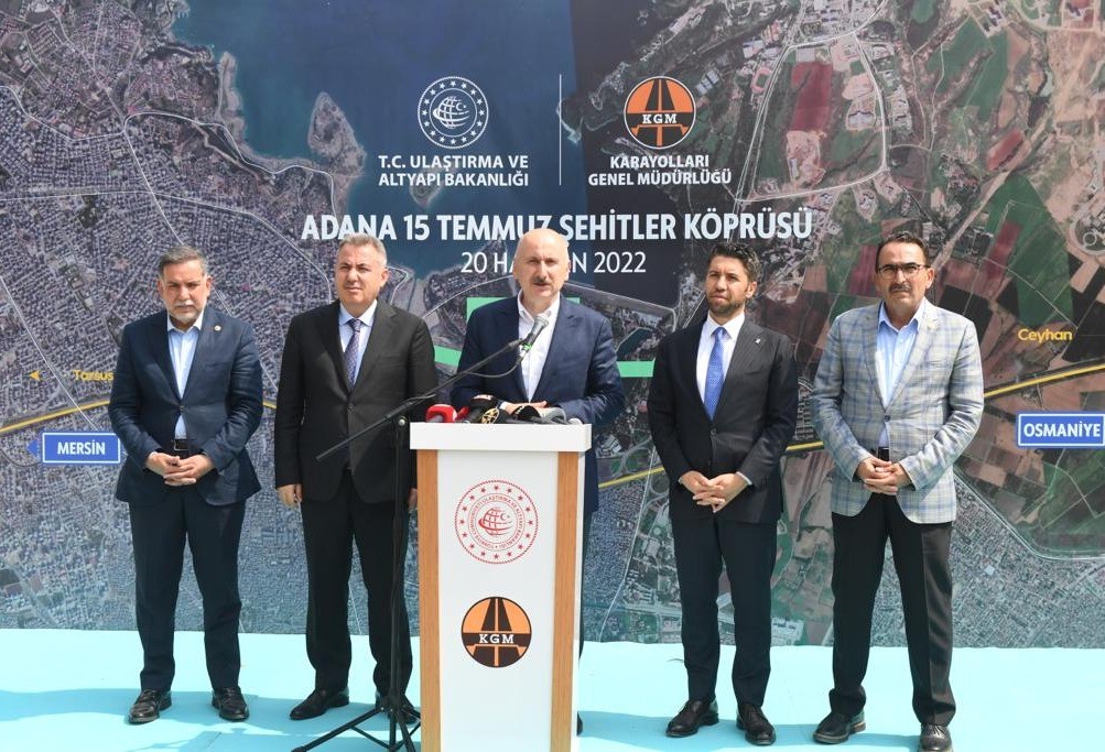 Başkalarının ne dediğine kulak asmadan, polemiğe girmeden, eser siyasetinden ödün vermeden çalışmaları var güçle sürdürdüklerini dile getiren Karaismailoğlu, “O nedenle hem iç hem de dış entegrasyonu sağlayan, dünyayı Türkiye’ye bağlayan eserlerimize her gün bir yenisini ekliyoruz. Bu kapsamda; 15 Temmuz Şehitler Köprüsü için 1 milyar 350 milyon liranın üzerinde bir yatırım planladık. Köprümüz, bin 669 metre uzunluğunda, 23 açıklıklıdır. Yapım çalışmalarında geçtiğimiz yıl; köprü ayağı temeli, forekazık imalatları, döşeme kiriş imalatları, temel elevasyon betonu imalatlarını gerçekleştirdik. Yapımına Ağustos 2021’de başladığımız köprüde yüzde 56 oranında fiziki gerçekleşme sağladık. Projemizi 2023 yılının ilk yarısında hizmete açacağız. 15 Temmuz Şehitler Köprümüzün hizmete girmesiyle, şehrimizin Kuzey bölgesindeki trafikte büyük bir rahatlama olacak. Adana’nın; Stadyum, Çukurova Üniversitesi, Alparslan Türkeş Bilim Teknoloji Üniversitesi, Şehir Hastanesi ve mevcut Adana-Mersin Otoyolu’na kesintisiz bağlantısı sağlanacak. Aynı zamanda, şehir içi trafik de çok daha güvenli hale gelecek. Bu köprüyü geçmiş dönemdeki Adana Belediyesi başlatmıştı. Ama maalesef şu anki mevcut Adana Belediyesi bu işi devam ettirmediği için, vatandaşımız ve milletimiz için bu proje önemli olduğundan bakanlık olarak üzerimize aldık, bitirmek için ekip arkadaşlarımızla hummalı bir çalışma içindeyiz. Türkiye’nin 6. büyük şehri olan Adana’nın yoğun yerleşim alanlarının ortasında yer alan, 15 Temmuz Şehitler Köprüsü projesinde mümkün olduğunca az ayakla maksimum açıklıklarla barajın su tahliyesi önünde engel oluşturmamasına gayret ettik” değerlendirmesinde bulundu.