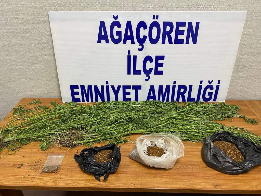 Ağaçören İlçe Emniyet Amirliği ekipleri tarafından uyuşturucu madde ticareti yapanlarla mücadele kapsamında uyuşturucu madde ticareti yaptıkları tespit edilen R.Ö. (39), O.A. (43) ve M.A. (41) yapılan operasyon sonucu yakalanmışlardır. Şüpheli şahısların işyeri ve ikametlerinde yapılan aramalarda (7.69) gram sentetik kannobinoid (bonzai) ve (9) kök hint keneviri bitkisi ele geçirilmiştir.