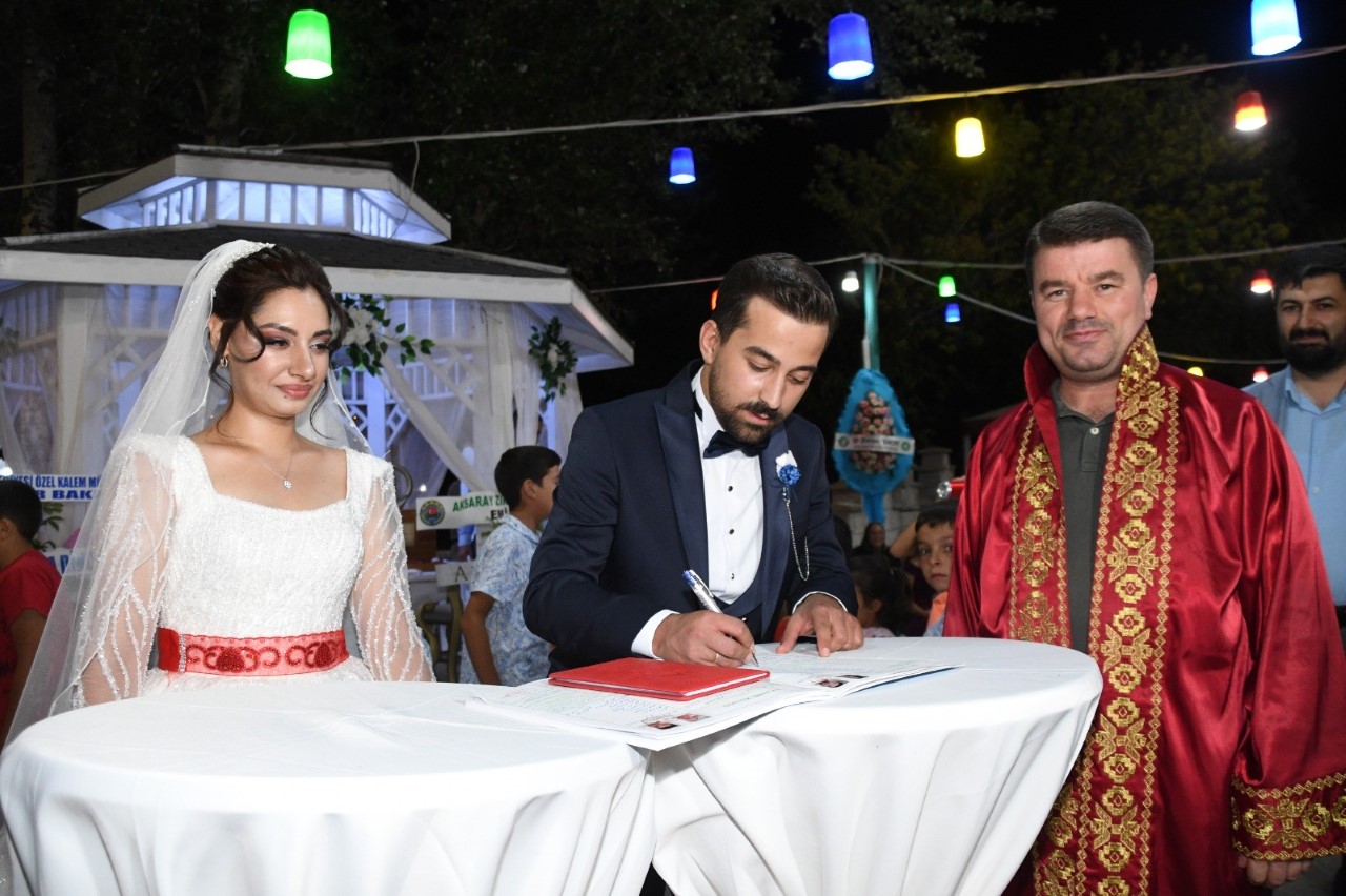 Bir yıl içerisinde nüfusa oranla en çok evlilik yapılan iller arasında yer alan Aksaray’da Çiftlerin isteğine bağlı olarak Kılıçarslan parkı içerisindeki evlendirme müdürlüğünde nikahlar kıyıldığı gibi isteyen çiftler içinde kurum dışında nikahlar kıyılabiliyor.