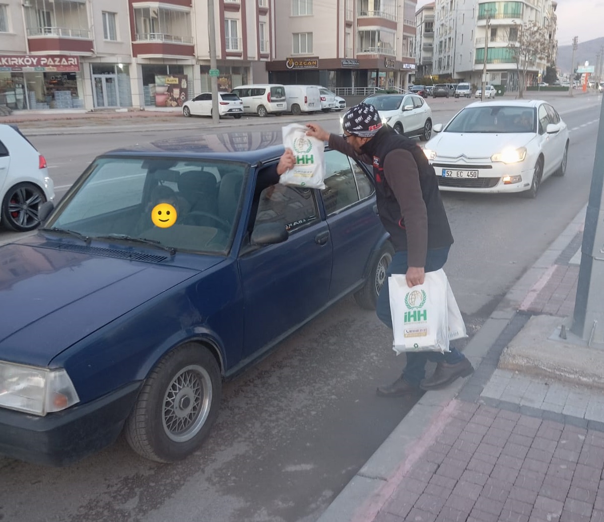 Şehrin işlek yollarından Organize ve Yeni Sanayi mevkine ulaşımı sağlayan caddelerde trafik ışıklarının bulunduğu kavşaklarda bekleyen gönüllüler, akşam ezanının okunmasının ardından hala evlerine ulaşamamış olan sürücülere su, hurma ve kekten oluşan iftarlık ikram etti.