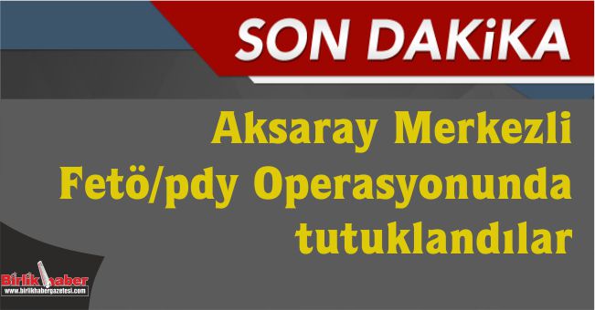 Aksaray Merkezli Fetö/pdy Operasyonunda tutuklandılar. Aksaray Merkezli 8 İlde Fetö/pdy Operasyonu. Aksaray merkezli 8 ilde Fetullahçı Terör Örgütü/Paralel Devlet Yapılanması’na (FETÖ/PDY) yönelik operasyon kapsamında, adli kontrol kaydıyla serbest bırakılan 21 şüpheliden 10’u, cumhuriyet başsavcılığının itirazı üzerine tekrar gözaltına alındı.