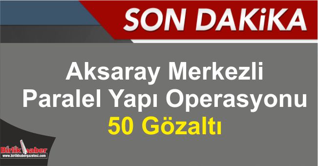 Aksaray merkezli sekiz ilde Paralel Yapı operasyonu düzenlendi. Aksaray İl Emniyet Müdürlüğü TEM ve KOM şube müdürlüklerinin düzenlediği operasyonda iş adamı, avukat ve memurların da aralarında bulunduğu 50 kişi gözaltına alındı.