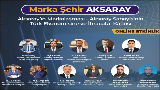 Türkiye’nin 1 Milyon Patent hedefine ulaşması adına Aksaray Valiliği öncülüğünde gerçekleştirilen Marka Şehir etkinliklerinin yeni durağı Aksaray, Adres Patent Yönetim Kurulu Başkanı Av. Ali Yüksel’in moderatörlüğünde “Aksaray’ın Markalaşması-Aksaray Sanayisinin Türkiye Ekonomisine ve İhracata Katkısı” etkinliği 4 Mart Perşembe günü saat 14.00 ile 16.00 arasında kamu, üniversite ve reel sektördeki birçok oyuncunun katılımıyla düzenlenecek.
