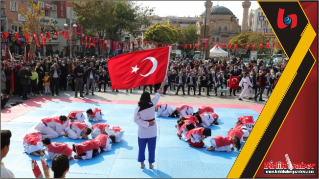Tören şiirlerin okunması, solo zeybek ve halk oyunları gösterileri ile devam etti. Gençlik ve Spor İl Müdürlüğü sporcularının çeşitli spor gösterileri sunduğu kutlama töreni geçit töreninin ardından Vali Hamza Aydoğdu’nun tebrikleri kabulü ile sona erdi.