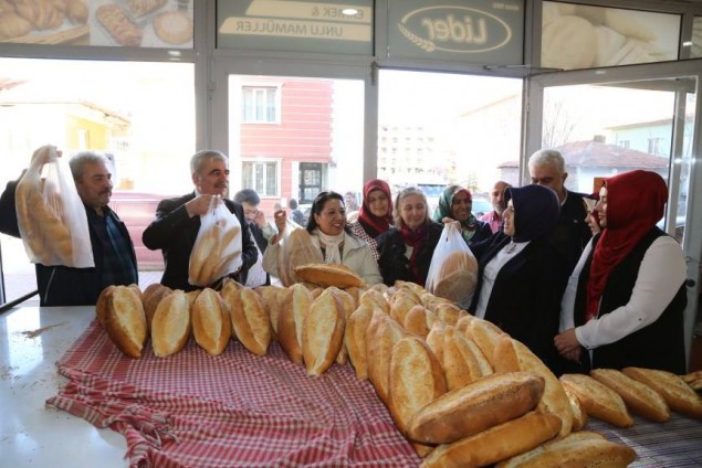 İhtiyaç sahiplerine yapılan yardımların dinin gereği olarak ‘sağ elin verdiğini sol el görmeyecek’ anlayışında olduğunu buna özellikle dikkat ettiklerin ifade eden Ataklı Hanımefendi; “Ancak iyilikleri de konuşmalıyız. Bunu yaygınlaştırmak için konuşmalıyız. Konuşmadığımız zaman gündemimizden çıkıyor. İyilikleri hep beraber arttırmalıyız. Askıda ekmek kampanyası da grubumuz üyelerinin ortaya koyduğu bizimde hemen başlayalım dediğimiz bir iyilik hareketiydi. Bunun için Esnaf ve Sanatkârlar Odaları Birliği ve Fırıncılar Odamızla görüştük. Oda başkanlarımızın da bu konuya duyarlı yaklaşımı bizi çok memnun etti. Kampanyamızı bütün fırınlarımızda başlatıyoruz. “dedi. Adile Ataklı Hanımefendi, ekmek fırınlarında evine 1 ekmek alan vatandaşları 1 ekmek de askı için almasını isteyerek ihtiyaç sahiplerinin ekmek ihtiyacını karşılamaya davet etti. Kadın Platformu üyeleri, Esnaf Odaları Birlik Başkanı ve Fırıncılar Odası Başkanından oluşan heyet daha sonra oda başkanı Halis Altınsoy’a ait ekmek fırınını ziyaret ederek kampanyanın startını verdi.