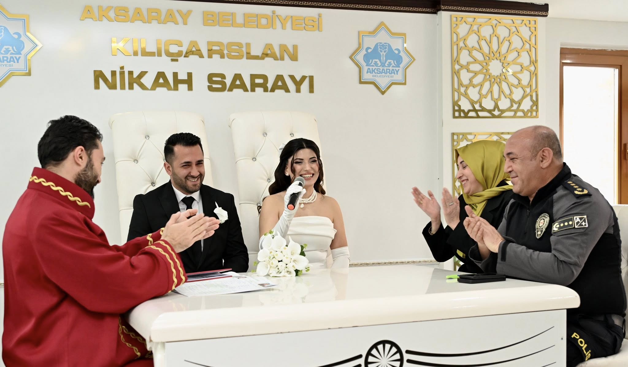 Aksaray’da anlamlı ve duygu dolu bir nikâh töreni gerçekleştirildi. Aksaray İl Emniyet Müdürü Bekir DEMİR, eşi Fethiye DEMİR Hanımefendi ile birlikte, İl Emniyet Müdürlüğü kadrosunda görev yapan Polis Memurları Büşra Mihraç ALAŞHAN ile Ahmet APAY’ın nikâh törenine katılarak genç çiftin en mutlu gününde yanlarında oldu.