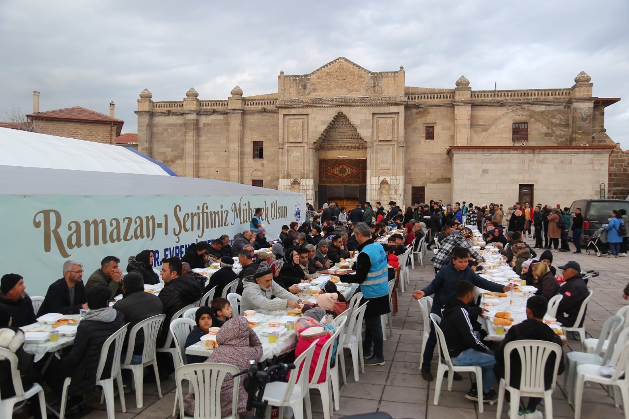 Aksaray Belediyesi’nin 11 ayın sultanı Ramazan ayında Ulu cami avlusunda açtığı iftar çadırı, her gün orucunu açmak isteyen misafirlerle dolup taşıyor. Her gün yaklaşık 2500 kişi ezan sesiyle orucunu açıyor.