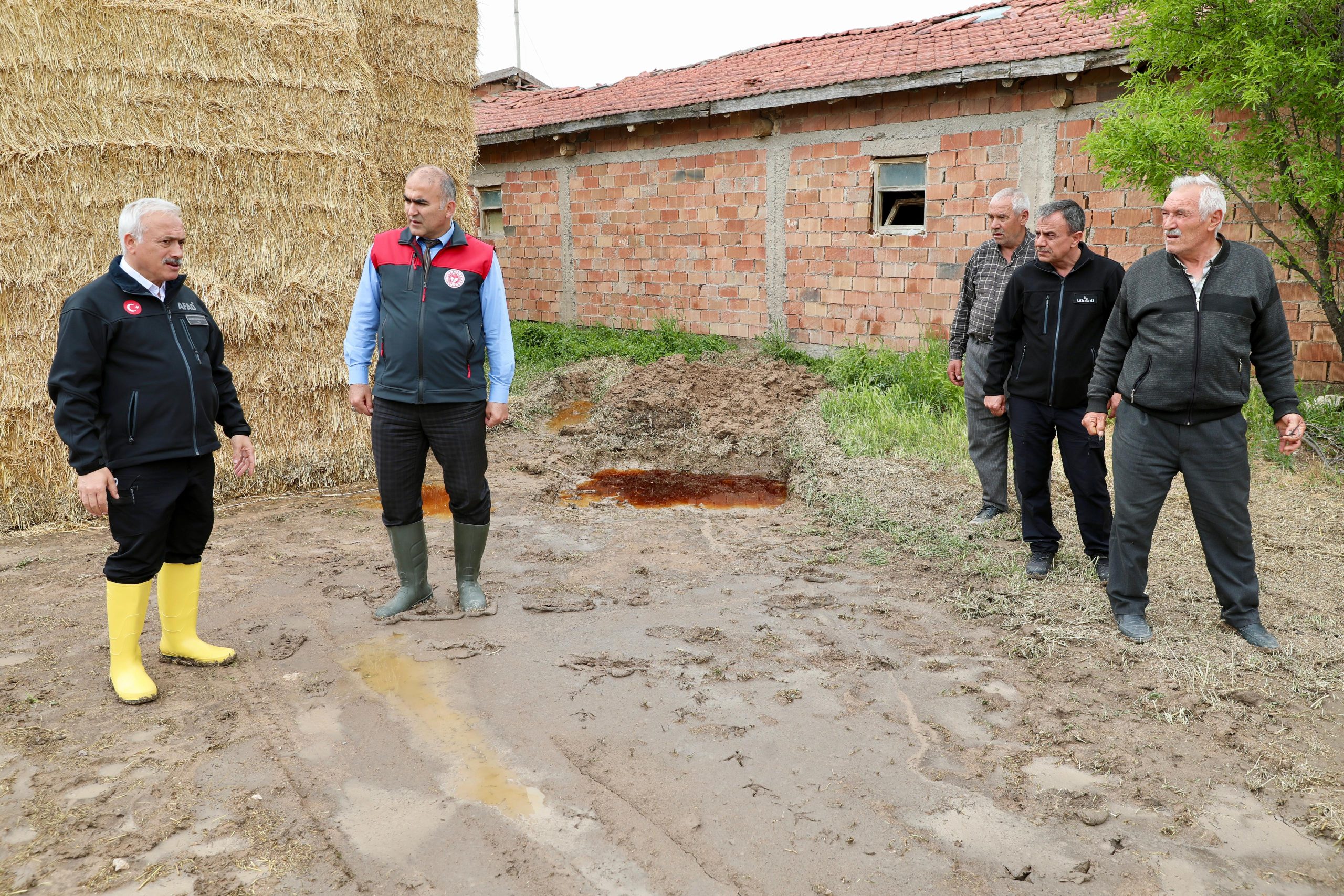 Aksaray Valisi Mehmet Ali Kumbuzoğlusağanak yağıştan etkilenen bölgelerde incelemelerde bulundu