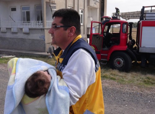 Yangın Hürriyet Mahallesi 4017 Sokak’ta bulunan Yalçın İlik’e ait iki katlı evin birinci katında meydana geldi. Dairede henüz bilinmeyen bir nedenle yangın çıktı. Yangın kısa sürede büyürken, daire alevlere teslim oldu. Evden duman yükseldiğini gören mahalle sakinleri durumu itfaiye, polis ve sağlık ekiplerine bildirdi. Olay yerine gelen sağlık ekipleri dumandan zehirlenenlere müdahale ederken, polis ekipleri bölgede güvenlik önlemleri aldı. Kısa sürede olay yerine gelen 4 ayrı itfaiye ekibi ise yangına 4 ayrı koldan müdahale etti. Bu sırada içeride 4 aylık bir bebek olduğunu öğrenen 112 Acil Yardım ekipleri, vatandaşların yardımı ile balkona dayadığı merdivenle bebeğe ulaştı. Dumandan zehirlenen ve simsiyah olan bebeğe ilk müdahale olay yerinde yapıldı. Bu sırada binanın 2’inci katında mahsur kalan daire sakinleri balkonda mahsur kaldı. İtfaiye ekipleri balkona merdivenle ulaşarak vatandaşları kurtardı. Yoğun dumandan zehirlenen 4 aylık bebek Yıldırım İlik, 4 yaşındaki Yasin İlik, 6 aylık bebek Melek Uygur, bebeklerin annesi Sibel İlik (25) ve anneanne Melek Uygur (57) ilk müdahaleleri olay yerinde yapıldıktan sonra ambulanslarla Aksaray Devlet Hastanesi’ne kaldırıldı. 4 aylık bebek Yıldırım İlik’in durumunun ağır olduğu öğrenilirken, yangın 1 saat süren çalışma sonucu tamamen söndürülebildi.