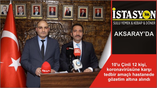 Aksaray’da 10’u Çin vatandaşı olmak üzere 12 kişi, koronavirüsüne karşı tedbir amaçlı hastanede gözetim altına alındı. Aksaray Valisi Ali Mantı, konu ile ilgili Valilik makamında gazetecilere yaptığı açıklamada, Kapadokya turu kapsamında Sultanhanı ilçesine gelen Çinli 10 kişilik turist kafilesindeki bir turistin, öksürük şikâyetiyle sağlık ocağına başvurduğunu söyledi.