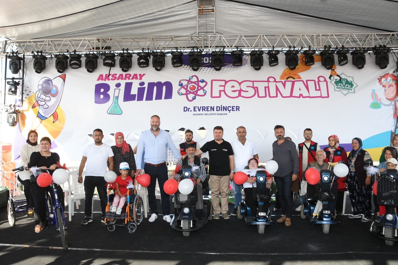 Bu yıl 2’si düzenlenen Aksaray Bilim Festivalinin son gününde gerçekleşen tören ile birlikte 10 adet akülü araç, tekerlekli sandalye ve görme engelliler için özel üretilmiş bisiklet, sahiplerine teslim edildi.
