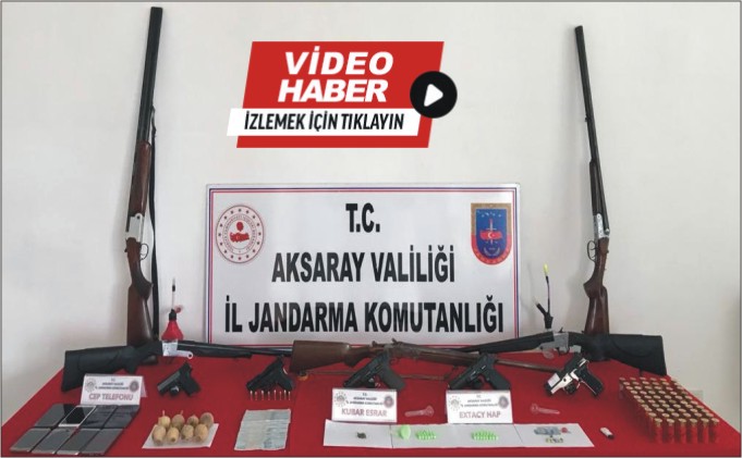 İl Jandarma Komutanlığı unsurlarınca devam eden takip ve Cumhuriyet Başsavcılığımızın talimatları doğrultusunda, Aksaray ili Merkez ve Ağaçören ilçeleriyle İstanbul ilinde 15 Mart 2021 günü eş zamanlı yapılan operasyonda, Organize suç örgütü kurarak uyuşturucu imal ve ticareti yapan H.G., E.B., İ.G., İ.A.,E.Y., Z.A., A.Ç., M.D., M.Ç., Ö.Ç., H.G., D.K. ve A.A., isimli şüphelilerin üzerlerinde, araçlarında ve evlerinde yapılan aramada; 5 adet tabanca, 3 adet tabanca şarjörü, 8 adet tabanca fişeği, 5 adet av tüfeği, 103 adet av tüfeği kartuşu, 42 adet uyuşturucu hap, 10 gr metamfeamin, 13 adet afyon sakızı kapsülü, 5 gr kubar esrar, 5 gr kenevir tohumu, 13 adet uyuşturucu ve uyarıcı madde kullanma aparatı, suçtan elde ettiği değerlendirilen bir miktar para, 1 adet flaş bellek, 10 adet cep telefonu ve 10 adet sim kart ele geçirilmiştir.