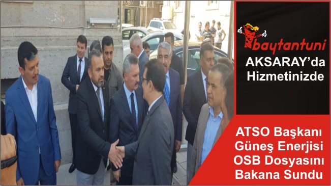 Aksaray’ın Sultanhanı, Eskil, İncesu arasındaki Güneşli Bölgesinin Türkiye’nin en verimli güneş enerjisine sahip olduğunu ve bu doğal kaynağın bir şekilde yatırıma dönüştürülmesi gerektiğini Enerji ve Tabi Kaynaklar Bakanı Fatih Sönmez’e detaylı bir şekilde anlatan ATSO Başkanı Göktaş, konuya ilişkin yaptığı açıklama da; “ Şehrimize bir takım ziyaretler ve Sultanhanı Doğalgaz Depolama Tesisini kontrol etmek için gelen Enerji ve Tabi Kaynaklar Bakanı Fatih Sönmez’e, projelerimiz arasında yer alan Güneş Enerjisi İhtisas OSB ile ilgili hazırlatmış olduğumuz fizibilite raporunu sunarak bilgi verdik. Devletimizin şu an için yatırımlarda ince eleyip sık dokuduğunu bildiğimiz için sadece yer tahsisinin yapılmasını ve orada üretilecek enerjinin devlet tarafından alınmasını bunun karşılığında da projenin geri kalan kısmının yatırımcılar tarafından yapılabileceğini belirttik. Bu proje şu an ülkemizin belli başlı şehirlerinde uygulanmakta ve son derece yüksek verim alınmaktadır. Aksaray bu kadar stratejik yerde ve en verimli güneş ışınlarına sahipken böyle bir projenin hayata geçmesinin hem devletimiz hem de şehrimiz adına katkılı olacağını dile getirdik. Sayın Enerji ve Tabi Kaynaklar Bakanı Fatih Sönmez’de konu ile ilgili çalışma yapacaklarını dile getirmişlerdir. İnşallah bu proje devletimizin de onayı ile hayata geçirilir ve kazanan Aksaray olur” Dedi.