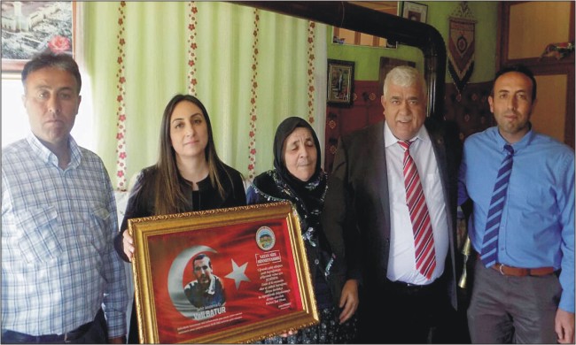 Ailelere Vali Aykut Pekmez tarafından hazırlatılan Türk Bayrağı ve şehitlerinin fotoğraflarını bulunduğu tabloları hediye eden Yeşim Pekmez Hanımefendi; şehitlerin hakkının asla ödenemeyeceğini vurgulayarak; “Bizler vatan için can veren şehitlerimiz sayesinde bu topraklarda yaşadığımızı hiçbir zaman unutmayacağız. Ne yaparsak yapalım onların hakkını hiçbir zaman ödemeyeceğiz. Allah onlardan razı olsun. Bize düşen onların emaneti olan şehit ailelerimizi yalnız bırakmamak. Bu devlet ve bu millet sizlerin her zaman yanında olacaktır.” dedi.