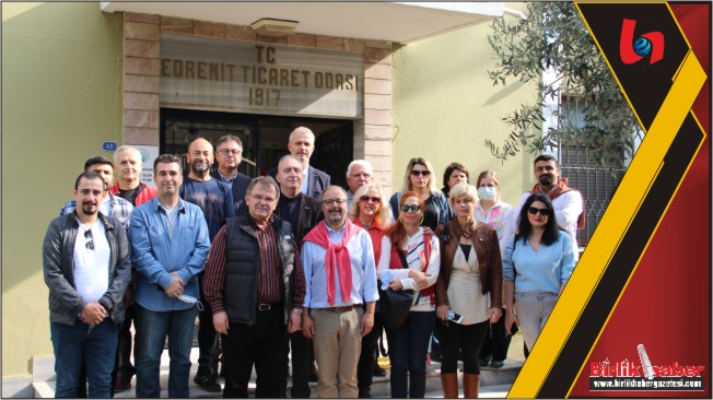 “Zeytin Rotası”nı ivedi olarak bölgede belirlemek üzere çalışmalara başlamış olan TÜRSAB Zeytin Rotası kapsamında Edremit Ticaret Odası Tadım Laboratuvarı’nı da gezdi. Laboratuvarı Yönetim Kurulu Başkanı Coşkun SALON, Meclis Başkan Yardımcısı Savaş CAN ve ETO tadım laboratuvarı panelisti Bülent COŞAR eşliğinde gezen katılımcılar Edremit Zeytinyağı coğrafi işaretli ürünlerini tatma ve tanıma şansına da sahip oldular. TÜRSAB Bölge Başkanlığı teşekkürlerini sunduktan sonra Edremit Ticaret Odası’ndan ayrıldı.