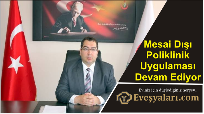 Mesai dışı poliklinik uygulamasında ki amaçlarının, mesai içindeki yoğunluğu azaltmak olduğunu söyleyen Başhekim Uzm.Dr. Kılıçaslan; “Bazı branşlarda uzman doktorlarımız nöbet, icap dışı akşam 17.00-20.00 saatleri arasında hasta muayene ediyorlar. Bu uygulamamız 2016 yılında Göz ve Çocuk Polikliniklerimiz ile başlamıştı. Şu anda mesai dışı poliklinik uygulamamız, FTR, Plastik Cerrahi, Genel Cerrahi, Üroloji, Kadın Doğum, Göz, Çocuk Hastalıkları, Cildiye ve KBB poliklinikleri ile devam ediyor” dedi.