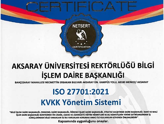 Aksaray Üniversitesi (ASÜ), bilgi güvenliği konusunda attığı adımlar ve standartlar doğrultusunda yaptığı çalışmaların ardından “ISO 27701:2021 KVKK Yönetim Sistemi Sertifikası” almaya hak kazandı.