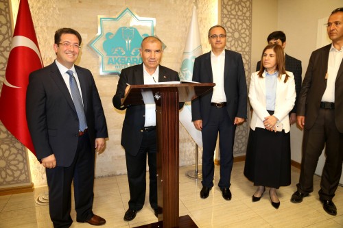 “Bugün burada bakanlarımızı ağırlamaktan çok mutluyuz gururluyuz. Aksaray’ı en az bizim kadar tanıyan, bizim kadar bilen, şehrimizin turizm, tarım ve sanayideki potansiyelinin farkında olan ve bunun yanında şehrimizin sorunlarına da vakıf olan çok değerli iki bakanımızı belediyemizde ağırlamak bizleri ziyadesiyle mutlu etmiştir. Ben tekrardan hoş geldiniz şeref verdiniz diyorum ve bakanlarımızın yeni görevlerinin hayırlı olmasını diliyorum.