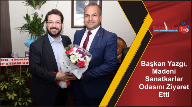 Ziyaretin sonunda Belediye Başkanı Haluk Şahin Yazgı, Madeni Sanatkârlar Odası Yeni Başkanı Murat Tekin’ e çiçek verdi.