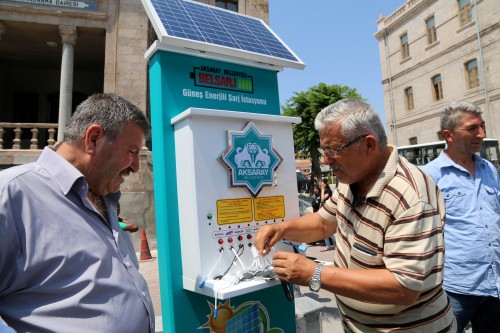 Daha önce kent meydanında Belnet ücretsiz internet hizmeti ve engelliler için araç şarj istasyonu kuran Aksaray belediyesi güneş enerjisi ile çalışan ve Belşarj adı verilen cep telefonu şarj etme ünitesini vatandaşların hizmetine sunarak bir ilke daha imza attı.