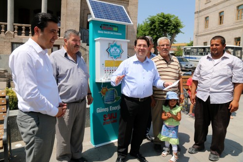 Tabi burada bizim amacımız şu; vatandaşlarımız cep telefonlarını ve bilgisayarlarını burada ücretsiz olarak şarj edebiliyorlar. Bu sistem güneş enerjisi ile çalıştığı için bedava olan enerjiyi yine vatandaşlarımıza bedava olarak veriyoruz. Bununla birlikte aynı üniteleri 10 adet daha yapıp şehrimizin muhtelif yerlerinde hizmete sunmayı düşünüyoruz. Hizmetlerimiz inşallah aratarak devam edecek” Dedi.