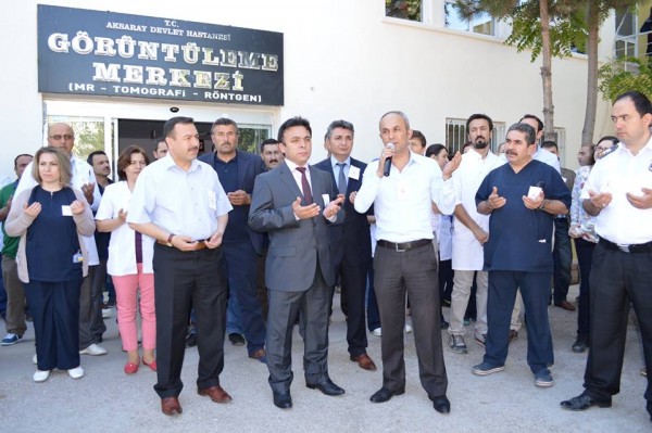Aksaray Devlet Hastanesi A Blok (Görüntüleme Merkezi) önünde silahlı saldırı sonucu hayatını kaybeden Op. Dr. Kamil FURTUN için Aksaray Devlet Hastanesi Genel Sekreteri Op. Dr. Himmet DURGUT tarafından basın açıklaması yapıldı ve hayatını kaybeden Op. Dr. Kamil FURTUN için dua okundu.