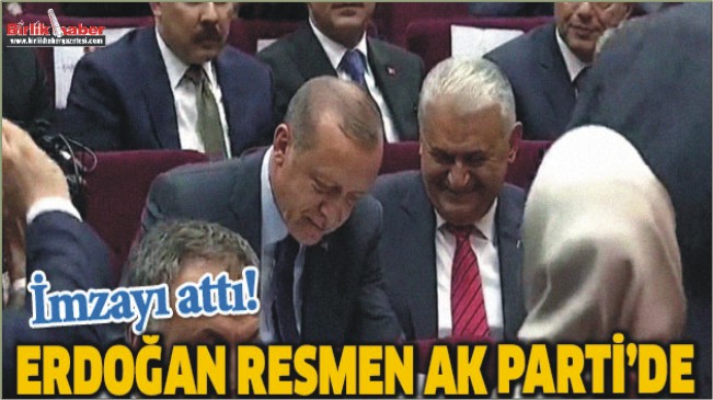 Cumhurbaşkanı Recep Tayyip Erdoğan, üyelik beyannamesini imzalayarak, 33 ay sonra kurucusu olduğu AK Parti’ye üye oldu.