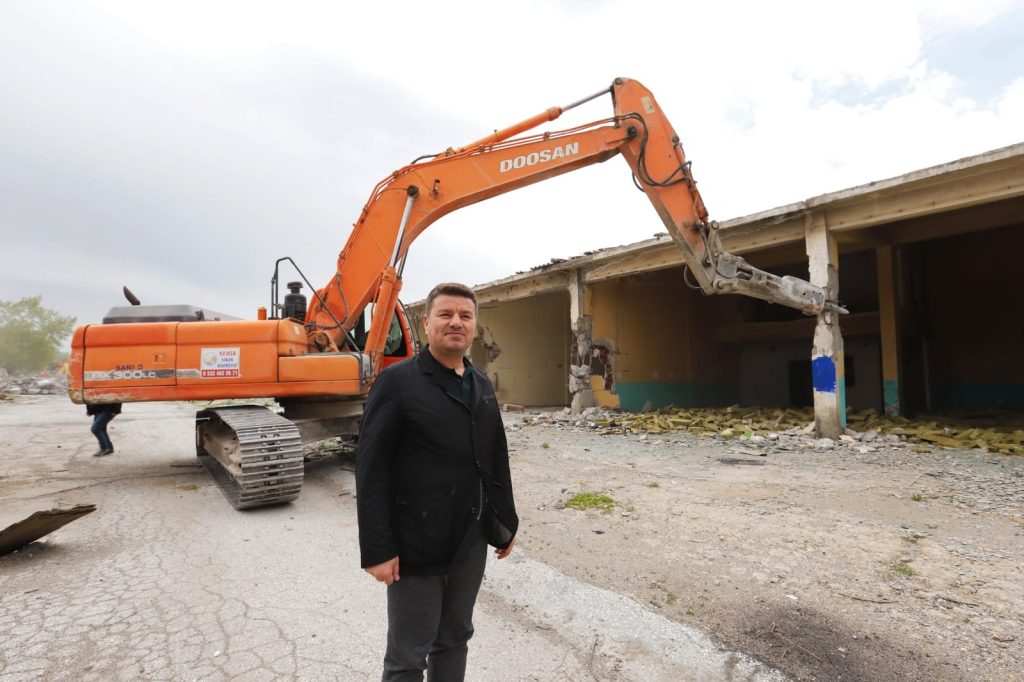 Belediye Başkanı Dr. Evren Dinçer, eski sanayi sitesinde dönüşüm sürecinin resmen başladığını duyurdu. Başkan Dinçer, ekskavatöre binerek eski sanayi sitesinde ilk yıkımı başlattı.