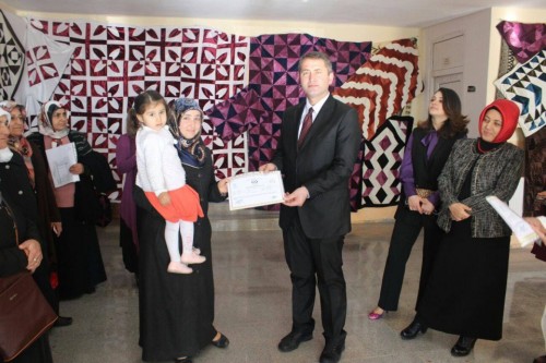 Sergi açılışından sonra Geleneksel Türk El Sanatları içerisinde önemli bir yer tutan ve gelecek nesillere aktarılması için düzenlenen kursu başarı ile tamamlayan kursiyerlere sertifikaları verildi.
