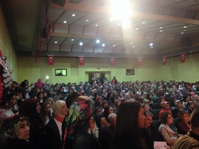 Aksaray’da ilk kez bir derneğin yapmış olduğu kadınlar günü programı bu kadar yoğun ilgi ile karşılandı. Tiyatro salonunda izdiham yaşanırken katılımcılar çiçek ile karşılanıp, hediyeler ile uğurlandılar.