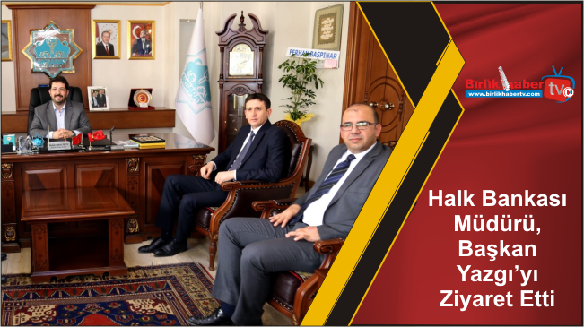 Halk Bankası Aksaray Şube Müdürlüğüne atanan Ümit Kürşat Bolat ve Banka Yöneticisi Mustafa Akça, Belediye Başkanı Haluk Şahin Yazgı’ya nezaket ziyaretinde bulundu.