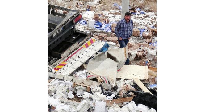 Aksaray’da, kontrolden çıkan broşür yüklü bir kamyon şarampole yuvarlanırken, sürücü kazadan burnu bile kanamadan kurtuldu.