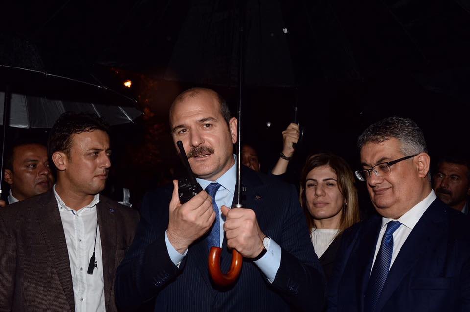 İl Emniyet Müdürü Ali Karabağ ve beraberindeki polis yetkilileri tarafından karşılanan Bakan Soylu, yağmur altında uygulama noktasında görevli Uyuşturucu ile Mücadele, Kaçakçılık ve Organize Suçlarla Mücadele ile Terörle Mücadele Şubelerinde görevli polislerle tek tek selamlaşarak sohbet etti.