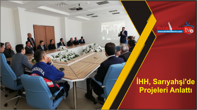 Aksaray İHH İnsani Yardım Derneği ilçelerde toplum yararına yürütülmekte olan projeleri tanıtmak amacıyla, ilçe yöneticileri, kurum amirleri ve işadamları ile tanıtım, istişare ve değerlendirme toplantıları yapıyor. Sarıyahşi’de İlçe Kaymakamı Sercan SAKARYA’ nın katılımları, tüm kurum amirleri ve hayırseverlerin hazır bulunduğu toplantıda toplum yararına yürütülmekte olan projeler hakkında bilgi verildi. Sarıyahşi’de yapılan faaliyetler anlatıldı.