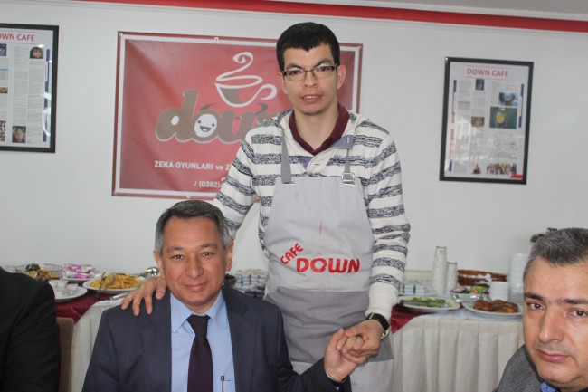 Spor Kulübü Başkanı Cem Elibol Aksaray’da uygulanan başka bir örneği de olmayan Down Cafe’ nin büyük ilgi gördüğünü söyledi. Ticari bir kaygı gütmeden sabah kahvaltısı, pasta çeşitleri, çay, kahve ve diğer içecek çeşitlerinin satışa sunulduğu Down Cafe’nin işletmeciliğini ‘Down Sendromlu’ gençlerin yaptığını ve Öğrencilerin, Down Cafe projesi ile, üretici ve mutlu birer vatandaş olarak yetişmeleri, iş sahibi olabilmeleri, başkaları ile iyi ilişkiler kurabilmeleri, işbirliği içinde çalışabilmeleri, çevresiyle uyum sağlayabilmeleri, kendi ayakları üzerinde durabilmeleri, temel yaşam becerileri kazanmalarının amaçlandığını belirten Cem Elibol, “öğrencilerimizin toplum içindeki rollerini gerçekleştirebilen, başkaları ile iyi ilişkiler kurabilen, iş birliği ile çalışabilen, çevresine uyum sağlayabilen, üretici ve mutlu bir vatandaş olarak yetişmelerini amaçlayan, bunun yanında kendi ayakları üstünde durabilen temel yaşam becerilerini kazanmış yetenek ve yeterlilikleri doğrultusunda iş ve meslek alanlarına ve yaşama hazırlanmalarını sağlayan bir eğitim kurumuyuz. Ayrıca özel eğitim gerektiren bireylerin uyum içerisinde toplumsal yaşama katılarak üretimde bulunduklarını topluma göstermek istiyoruz” dedi.