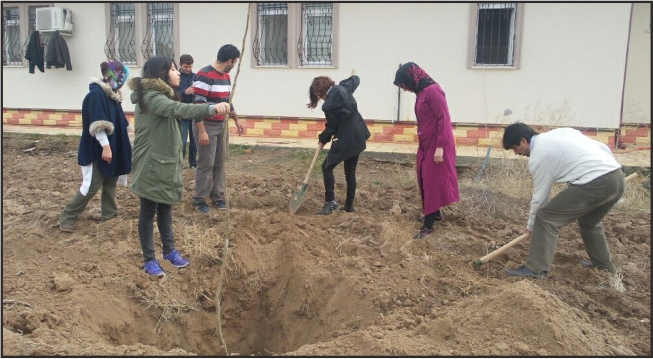 İl Sağlık ve Halk Sağlığı Müdürü Dr Mahmut Arık öncülüğünde sağlık çalışanları Şehit Ali Çakır Aile Hekimi Sağlık Evine ceviz ağacı diktiler.