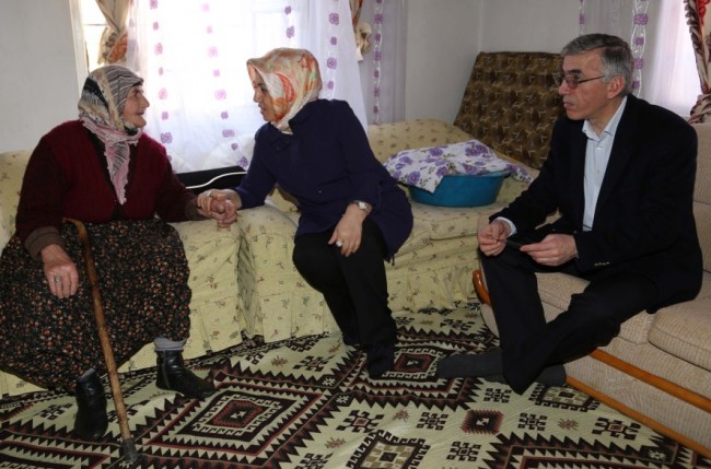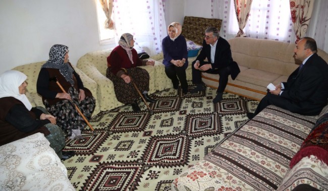 Daha sonra aldıkları yaşlılık aylığı ile yaşamlarını sürdüren Mehmet – Hatice Ayhan çiftini ziyaret eden Vali Ataklı eşi Adile Ataklı ile yaşlı çift ile bir süre görüşerek sohbet etti. Çocukları ve onlarca torun sahibi olan Ayhan çiftine sağlıklı bir ömür dileyen Vali Ataklı ile eşi Adile Ataklı daha sonra 87 yaşında engelli 66 yaşındaki oğluna bakan Nazife Çeşmecik’i evinde ziyaret etti.