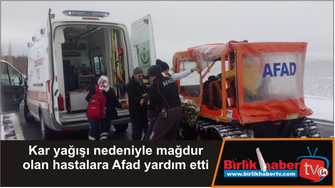 Aksaray Merkez Çekiçler Köyünde Diyaliz hastası olan ve kar ve tipiden dolayı köy ve anayolların kapalı olması nedeniyle 2 gündür diyaliz tedavisine gidemeyen 15 yaşındaki Sevda Çekiç isimli vatandaşımıza ambulans ekiplerinin ulaşamaması nedeniyle, AFAD Ekiplerinden yardım istendi. Anında harekete geçen AFAD ekipleri kısa sürede köye özel tasarımlı Afad’a ait 8×8 Amfibik Paletli Kurtarma aracı ile vatandaşımızın yaşadığı eve ulaşılarak hasta ve refakatçisi ile birlikte alınarak hazır bekletilen Ambulansa ulaştırıldı.