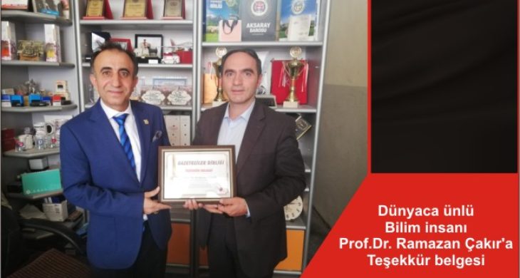 Aksaray Haberleri08 Ekim 2019 Dünyaca ünlü Bilim insanı Prof.Dr. Ramazan Çakır’a Teşekkür belgesi