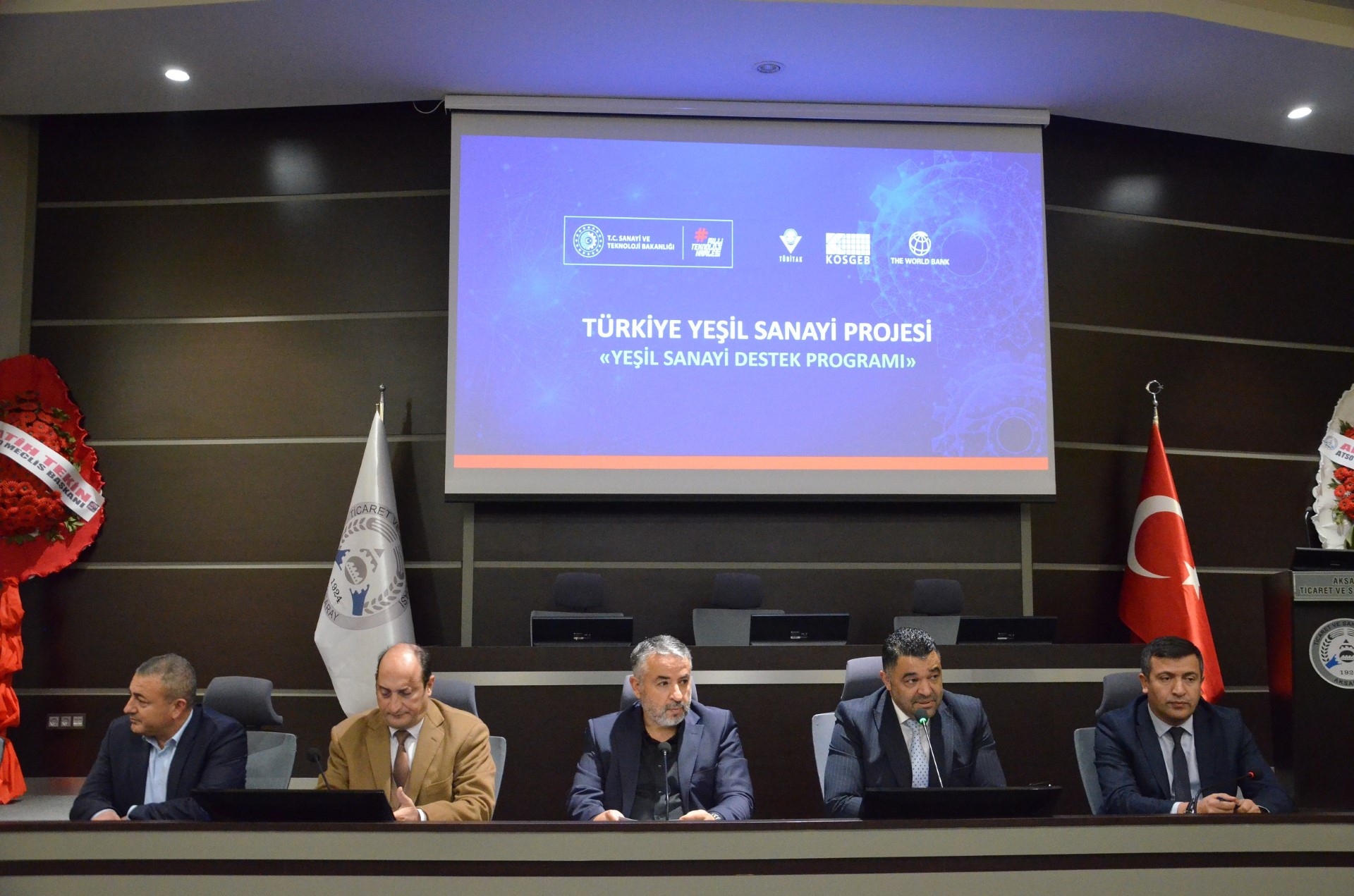 Sanayi ve Teknoloji Bakanlığı, KOBİ’lerin GES projeleri ile verimlilik, geri dönüşüm ve sürdürülebilirlik projelerine KOSGEB üzerinden toplam 250 milyon dolarlık geri ödemeli kaynak sağlayacak destekler hakkında bilgilendirme toplantısı Aksaray Ticaret ve Sanayi Odası M. Rifat Hisarcıkoğlu toplantı salonunda yapıldı.