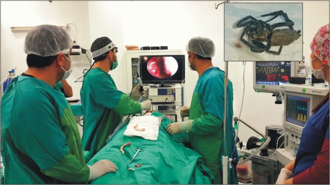 Ortaköy Devlet Hastanesindeki kulaktan örümcek çıkarılması işlemi , KBB Uzmanı Fuad Sofuoğlu tarafından gerçekleştirildi.