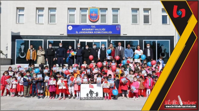 Aksaray’da anaokulu öğrencileri Cumhuriyet Bayramı dolayısıyla İl Jandarma Komutanlığını ziyaret etti.