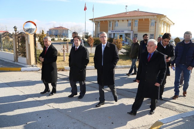 Vali Şeref Ataklı, Belediye Başkanı Haluk Şahin Yazgı ve OSB yönetim kurulu üyeleri ile altyapı ihalesi yapılan 2. genişleme alanında incelemelerde bulundu.