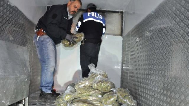 Aksaray’da piliç kamyonetine operasyon düzenleyen polis, kamyonet kasasına yapılmış özel zula bölmede 35 kilogram esrar maddesi ele geçirdi.