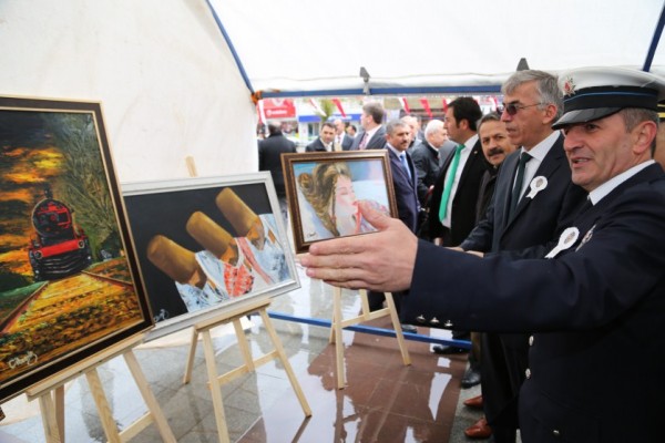 Törenin ardından Polis memuru Cihangir Şimşek’in kendi eserlerinden oluşan resim sergisinin açılışı yapıldı. Sergiyi gezerek ressam polis memuru Şimşek’ten eserleri hakkında bilgi alan Vali Ataklı, polisliğin yanında sanatın güzel bir dalı ile uğraşan polis memurunun çok güzel resimler yaptığını söyledi. Sergilenen eserleri inceleyen Vali Ataklı, eserleri beğendiğini belirterek ‘Vatandaşlarımızın da polisimizin sanat yönünü görmesi açısından önemli bir sergi kendisini tebrik ediyorum’dedi.