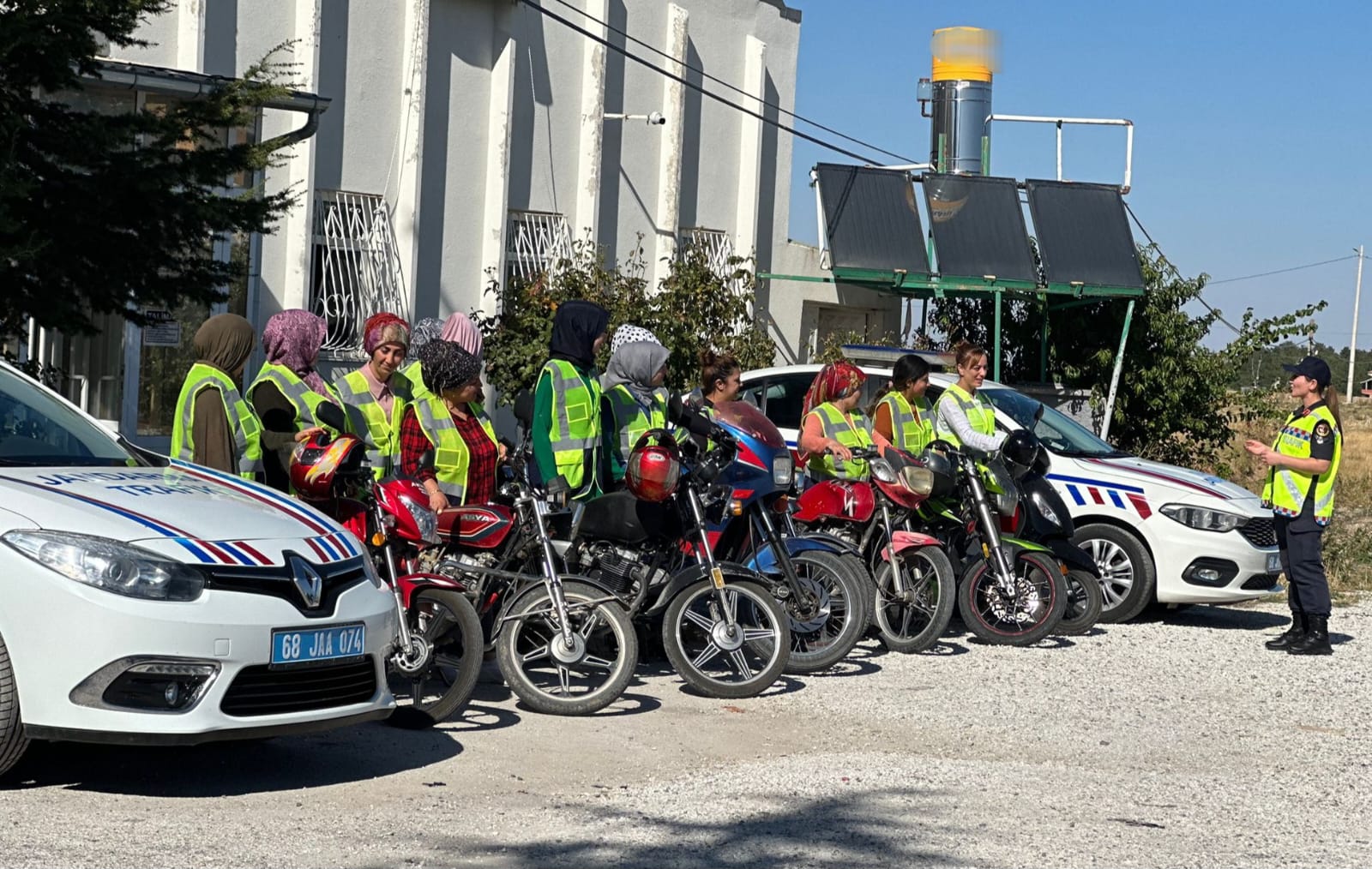 Bu kapsamda, Trafik Jandarması tarafından sorumluluk sahası içerisinde bulunan motorlu bisiklet, motosiklet ve elektrikli bisiklet kullanan kadın sürücülere; trafikte dikkat edilmesi gereken hususlar ile reflektif yelek, koruma başlığı (kask) ve koruma gözlüğü kullanımı konularında bilgilendirme yapılarak, motorlu bisiklet, motosiklet ve elektrikli bisiklet sürücülerinin trafikte görünürlüğünü arttırmak ve farkındalık oluşturmak amacıyla sürücülere reflektif yelek dağıtımı yapılmıştır.