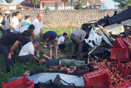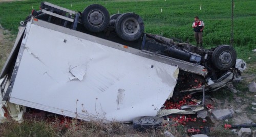 Aksaray’da şeftali yüklü kamyonun şarampole takla atması sonucu meydana gelen trafik kazasında 1 kişi hayatını kaybetti, 1 kişi ağır yaralandı.