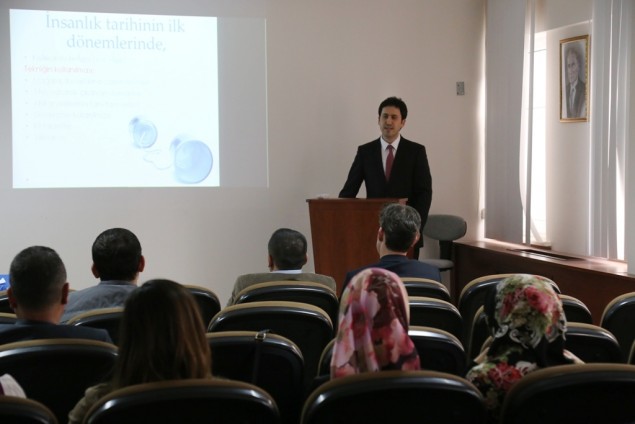 İktisadi ve İdari Bilimler Fakültesi (İİBF) tarafından her hafta düzenlenen Felsefe Toplantılarının 37’incisinde konuşan Çavuş, “Modern Çağın Hastalığı: Teknoloji Bağımlılığı” başlıklı bir sunum yaptı. İletişimin en önemli boyutlarından birisinin teknolojik araçlar aracı edilerek kurulan iletişim olduğunu dile getiren Yrd. Doç. Dr. Selahattin Çavuş, “İnsanlık tarihinin ilk dönemlerinden itibaren iletişimin kişilerarası boyutta, yüz yüze gerçekleştirildiği biliniyor. O dönemlerde tekniğin kullanıldığı iletişimler de var; mağara duvarlarına çizilen resimler, ateş yakarak çıkarılan dumanlar, yerlilerin çıkardığı sesler, güvercinlerin kullanılması… Tüm bunlar iletişimden başka bir şey değil. Modern zamanlara gelindiğinde ise iletişim teknikleri, yaşam tarzının ve üretim biçimlerinin değişmesi nedeniyle farklılaşmıştır. Modern zamanların en önemli özelliği, üretim biçimlerinin değişmesi ve buna bağlı olarak da iletişim tekniklerinin değişmesidir” dedi.
